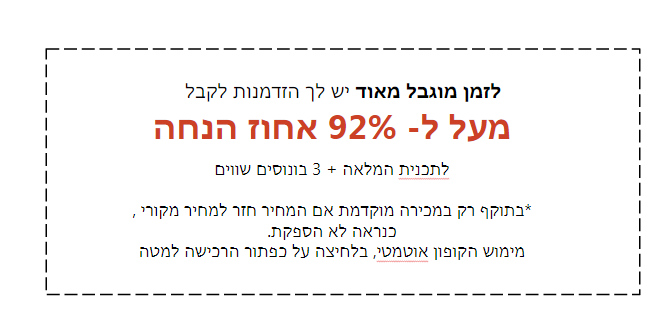 אל תפספס את האפשרות לחטוף את התוכנית במחיר הטבה היום