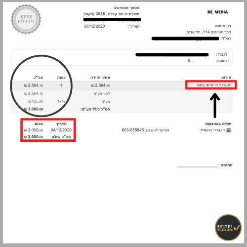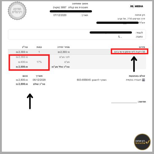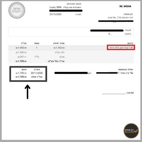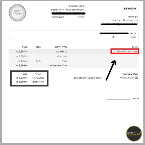 קבלות על סליקה לשעת עבודה - רון אוחנה סליקות פרימיום