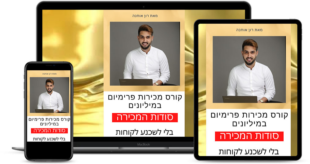 בקורס תכיר שיטות מהפכניות למכירה בסכומים גבוהים שאיתן לא משכנעים לקוחות ולא מסבירים להם שעות ומוכרים בקלות.